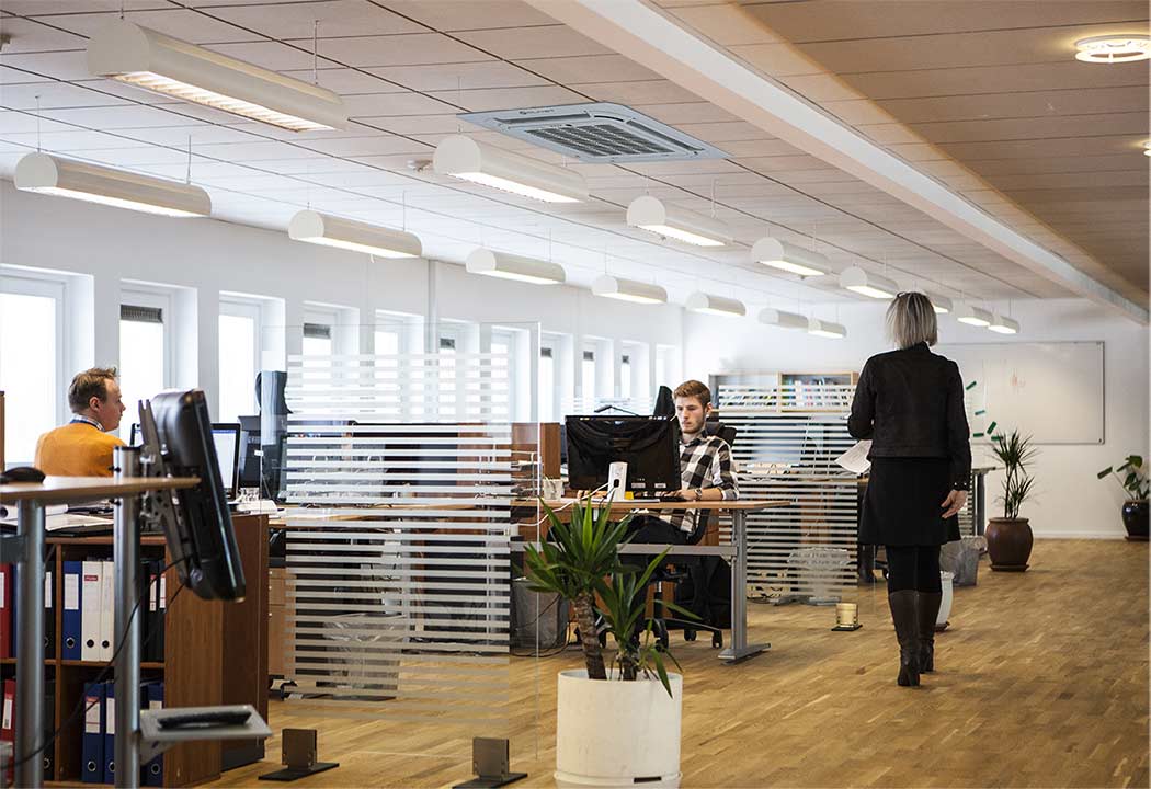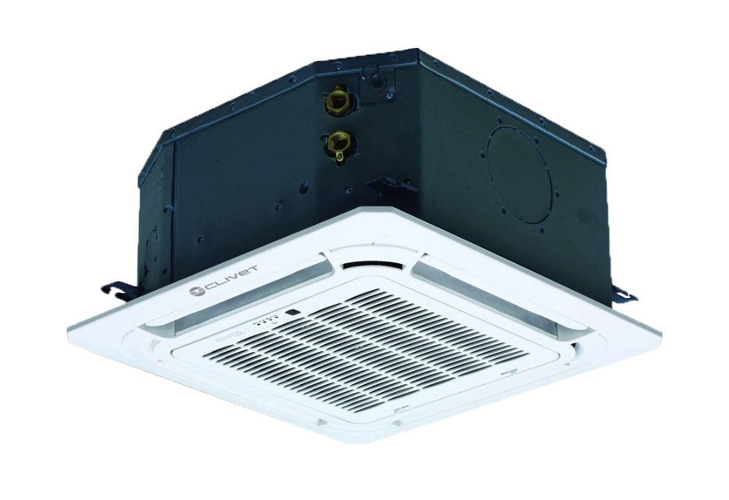 - Kazetni ventilokonvektor prikladan za standardne module tipičnih uredskih spuštenih stropova;